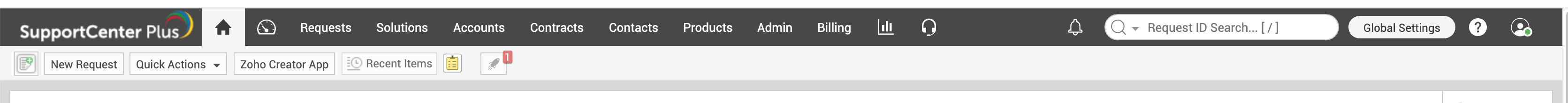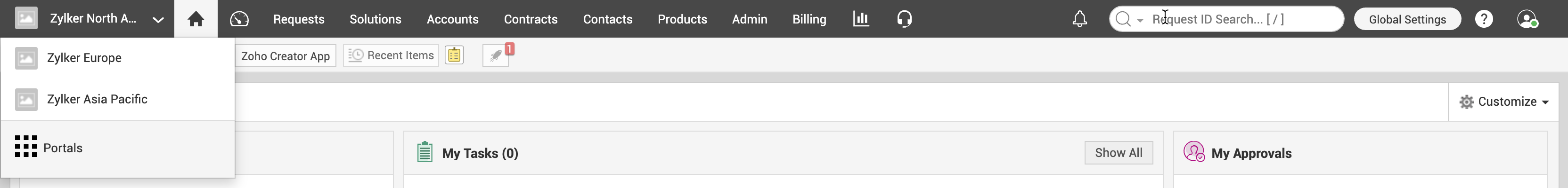A search tool to find all types of records across the application. To know more, click here. |
