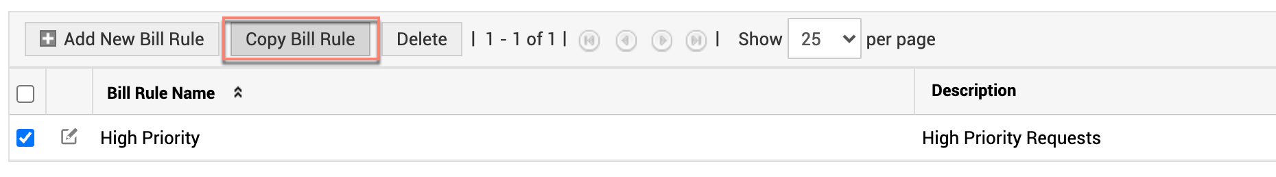 2. Select the preferred rule and click Copy Bill Rule.