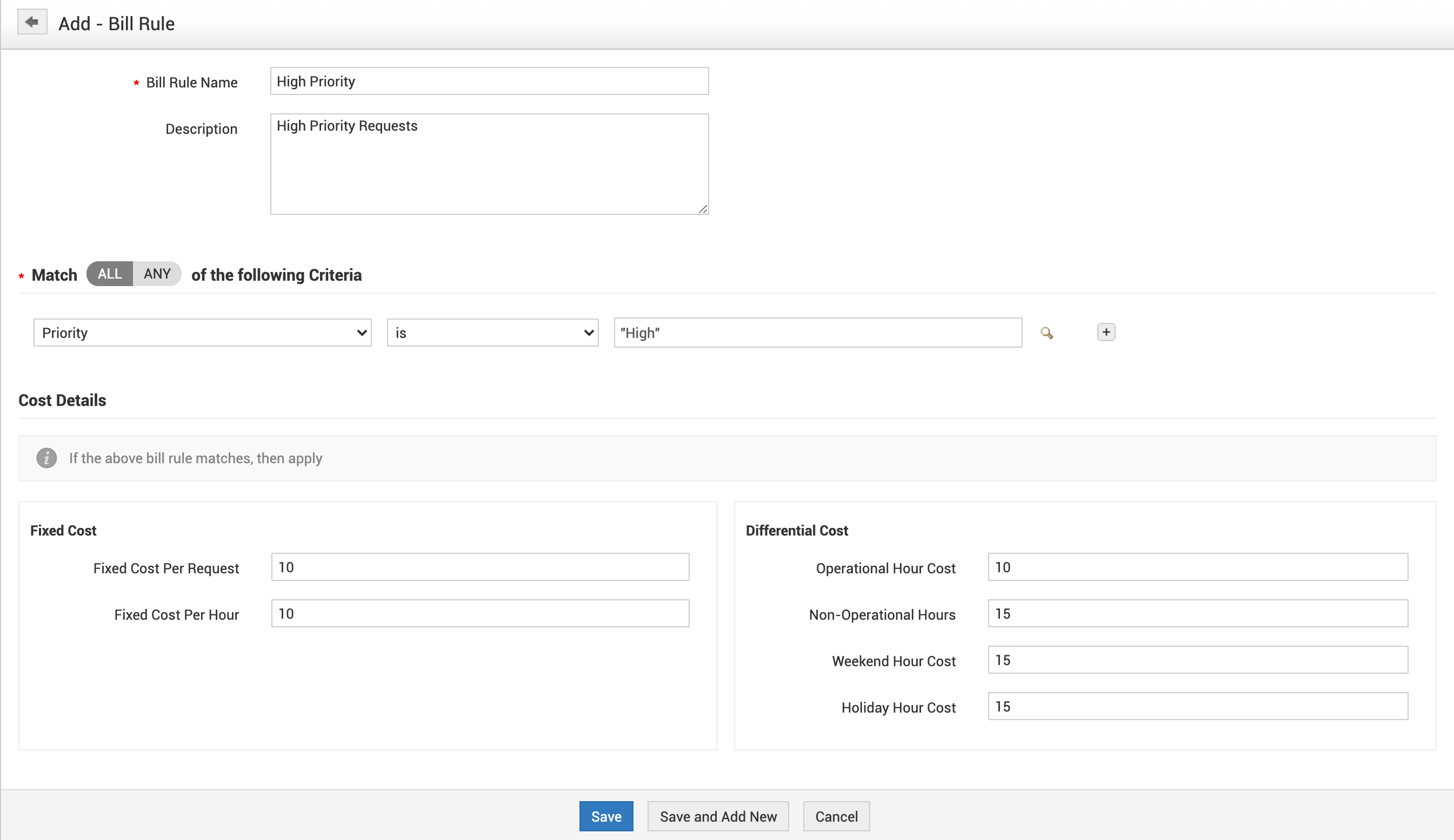 2. Click Add New Bill Rule to go to the relevant form.