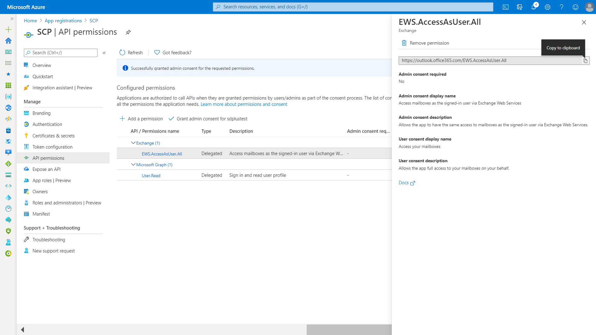 Choose Delegated Permissions >> EWS and enable the checkbox to add the corresponding permission.
