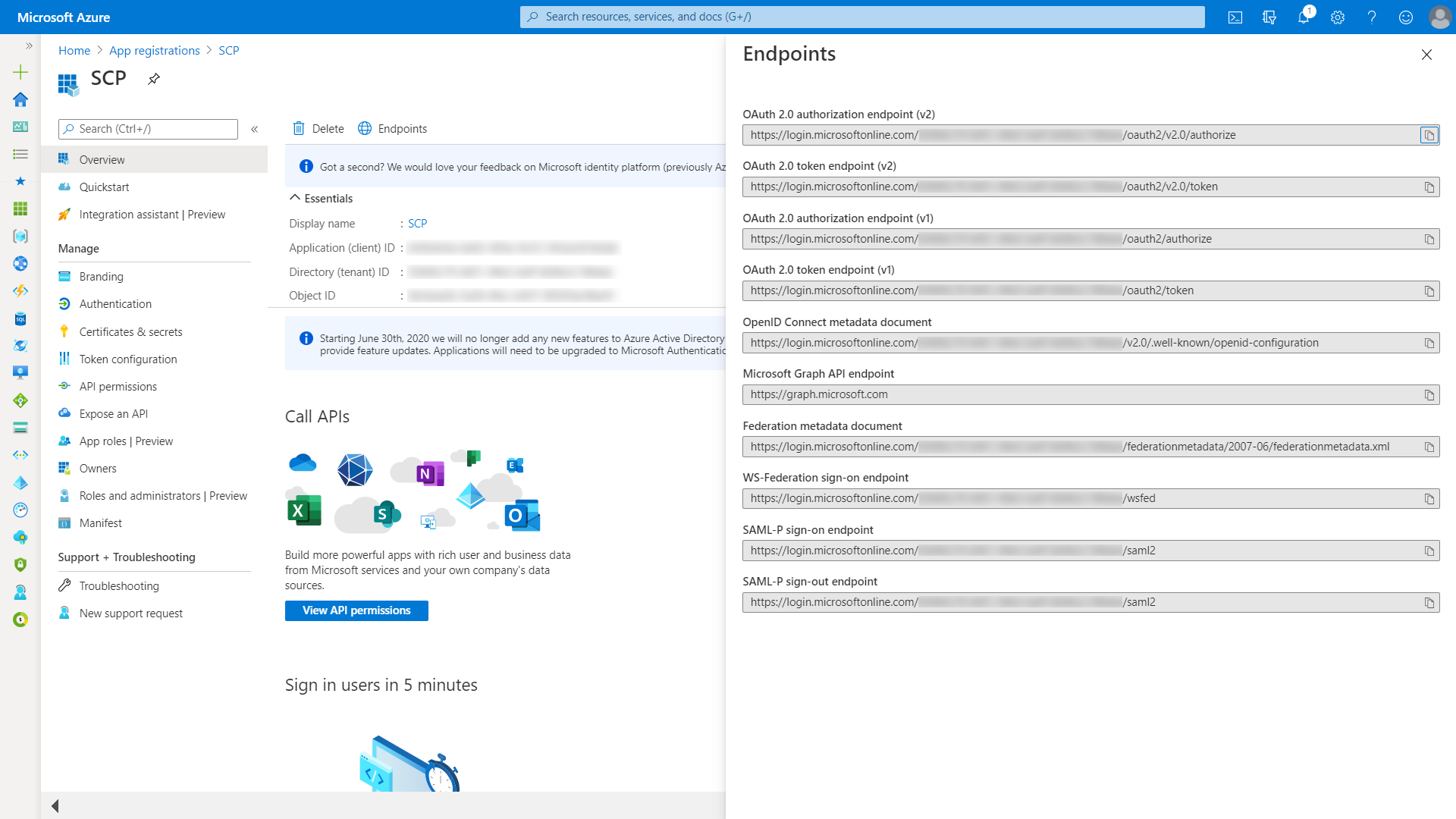 Copy OAuth 2.0 authorization endpoint (v2) and OAuth 2.0 token endpoint (v2) to Authorization URL and Token URL in SupportCenter Plus respectively.