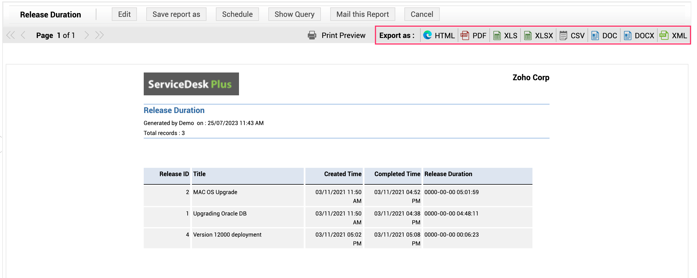 Exporting Report as PDF, HTML, XLS, XLSX, OR CSV