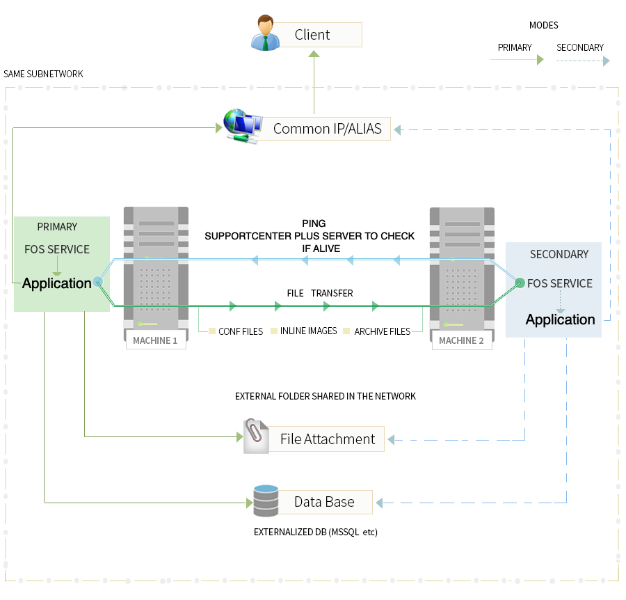 During the non-availability of the installation of SupportCenter Plus, the Fail Over Service acquires the common IP Address and starts the secondary installation automatically.