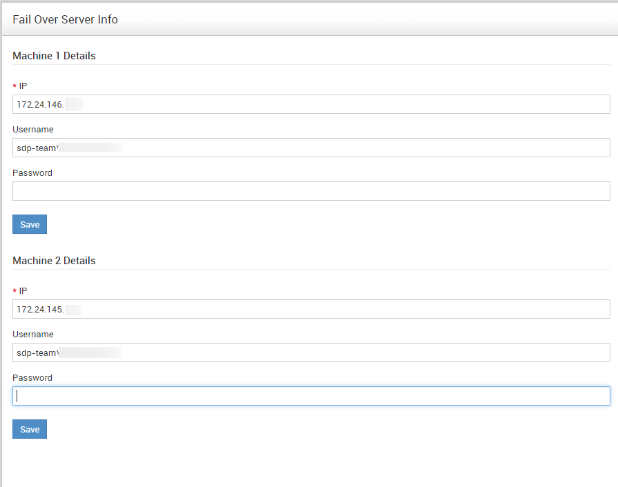 Fail Over Service replication schedule requires credentials to replicate files from the primary machine to the secondary machine when the application is running.
