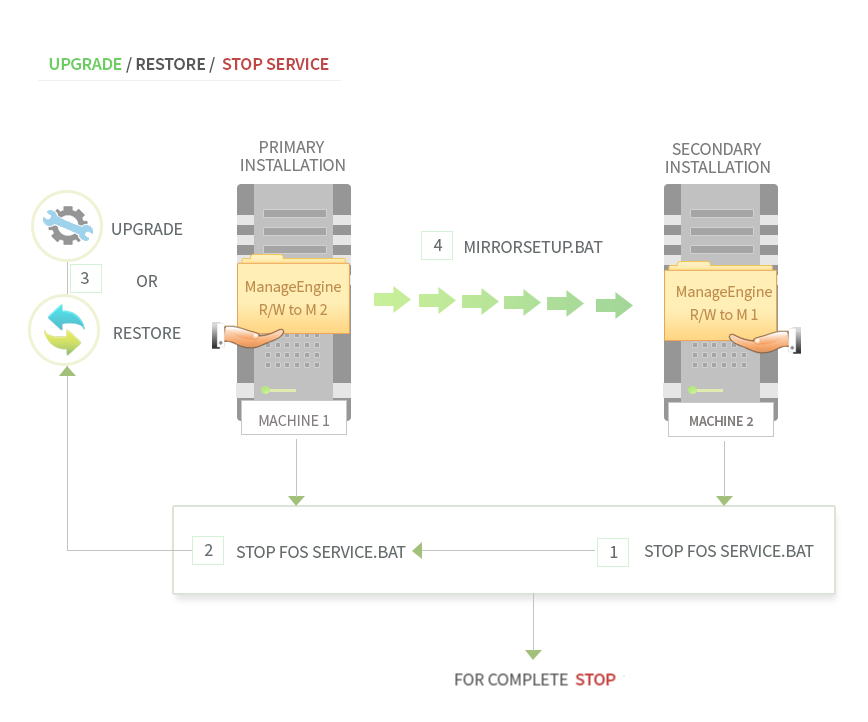 After the issue in the primary machine is resolved, you can restore the original Fail Over Service setup as discussed below.
