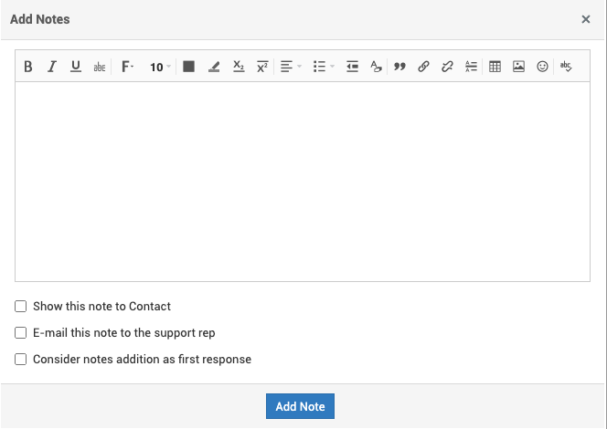- To email a note to a support rep, select E-mail this note to the support rep checkbox in the Add Notes editor.