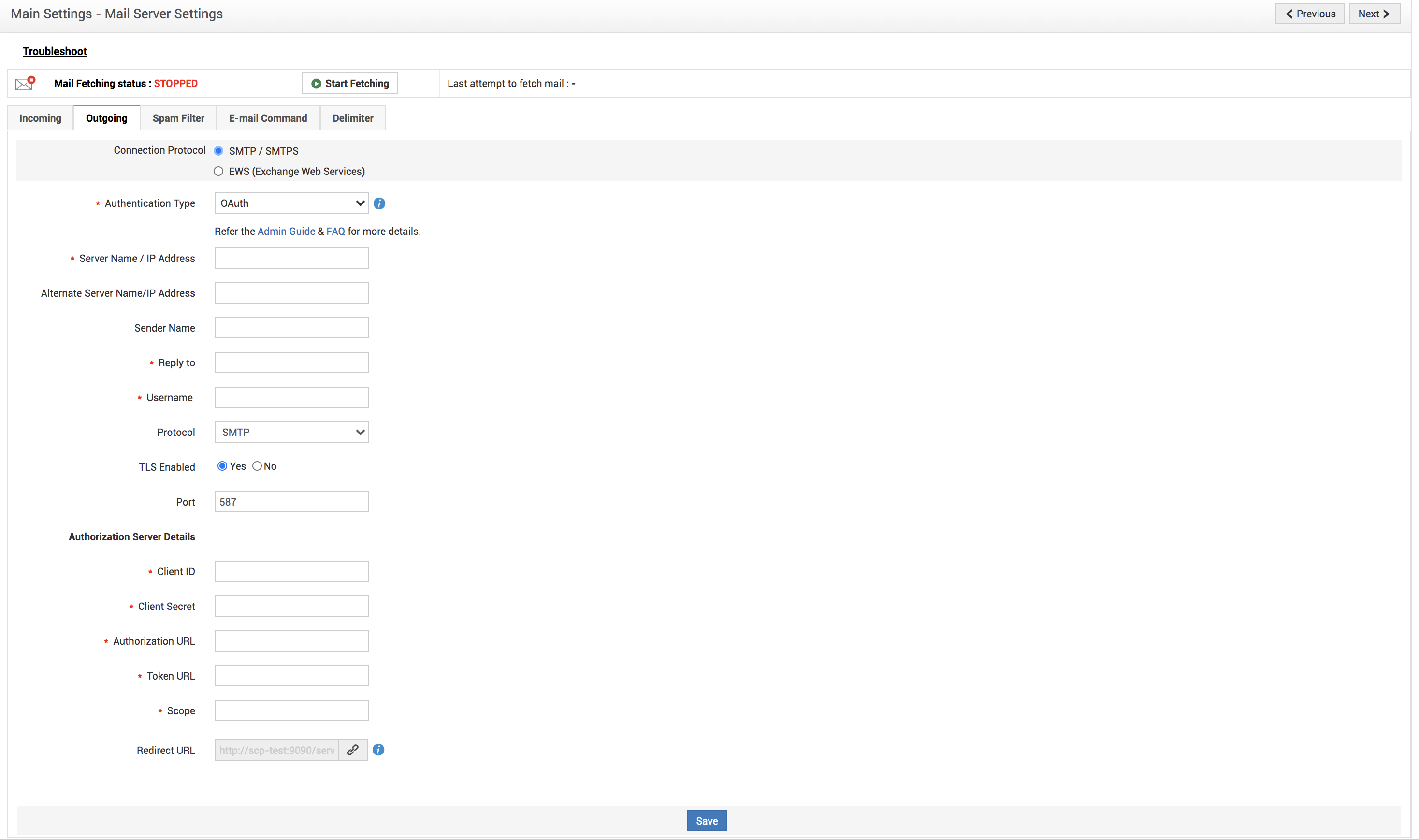 Choose OAuth as the Authentication Type and provide the Server Name / IP Address of the mail server.