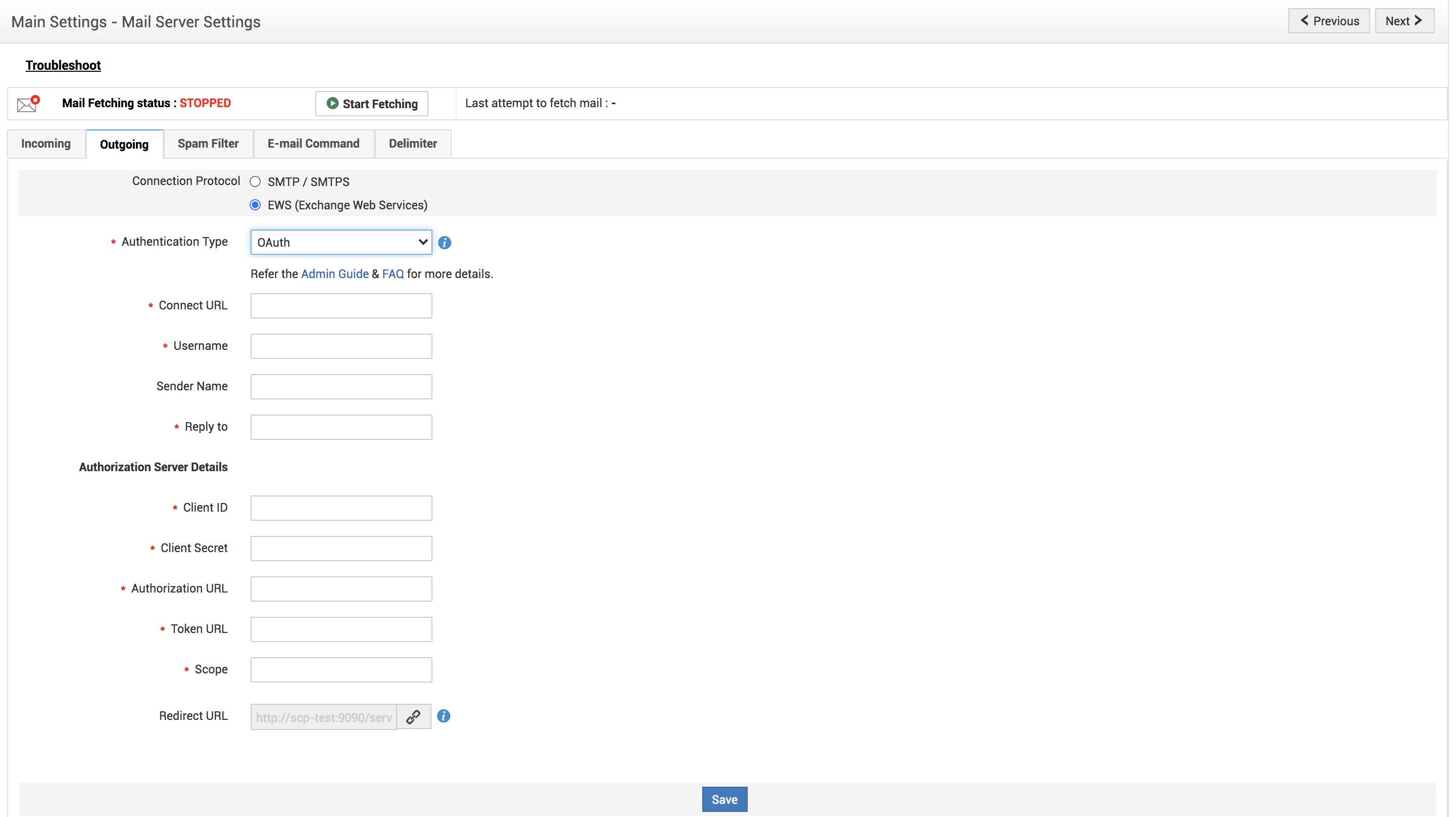 Obtain Client ID, Client Secret, Authorize URL, Access Token URL, and Scope from the authorization server using the Redirect URL. We have tested mail sending for EWS with Azure and Java Mail API with Gsuite. Click the link to know the step-by-step instructions to generate the access tokens from these servers.