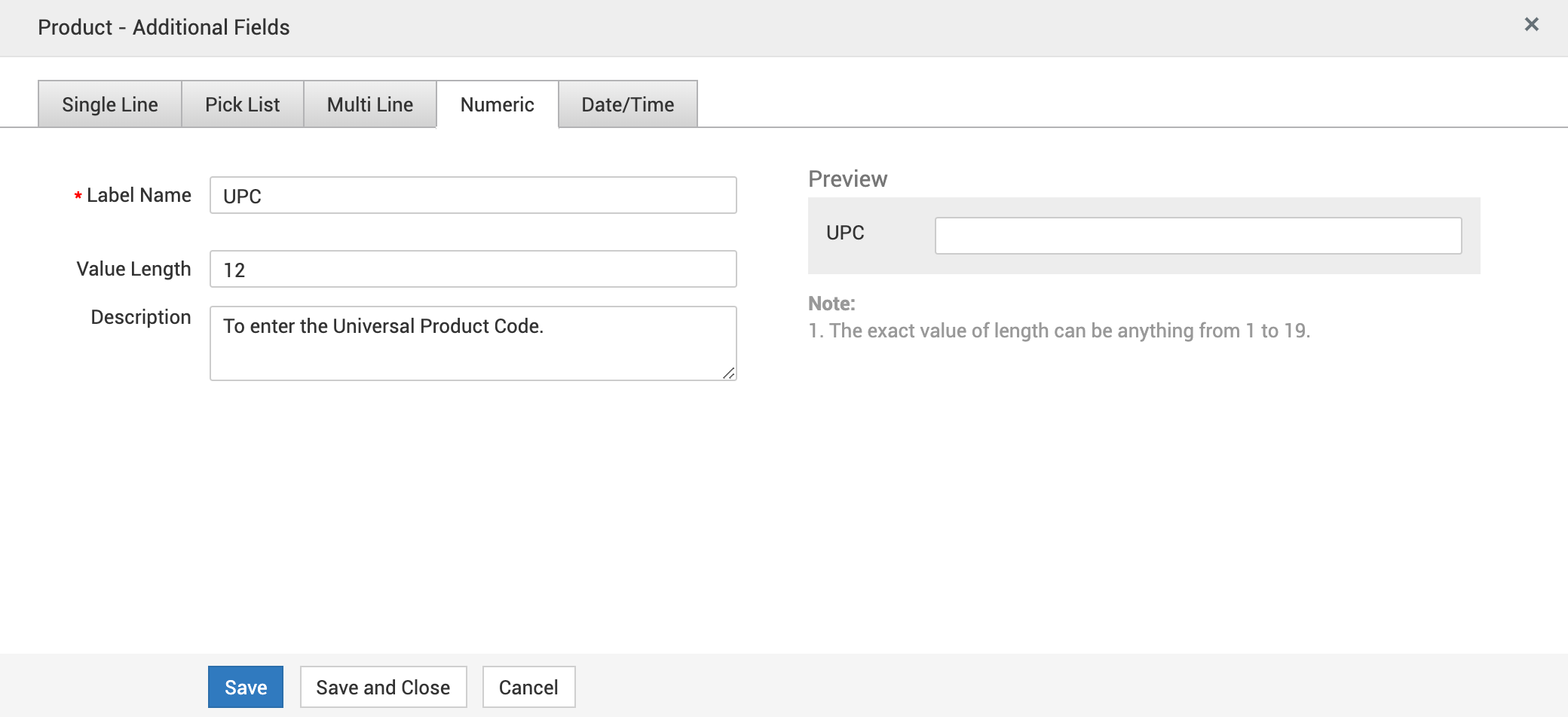 Based on your requirements, the default product record can be customized using different types of additional fields. This is useful to capture product-related additional information.