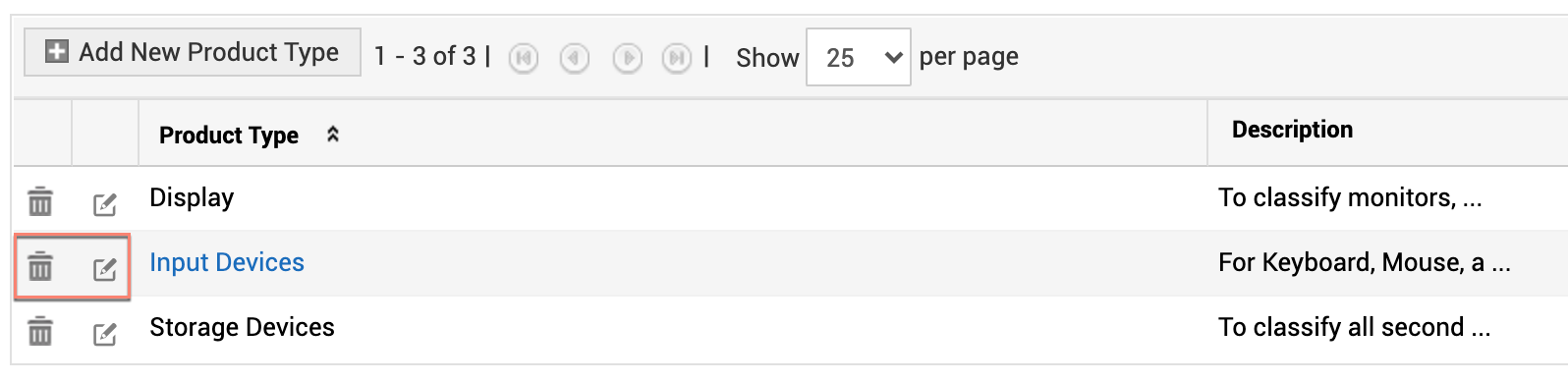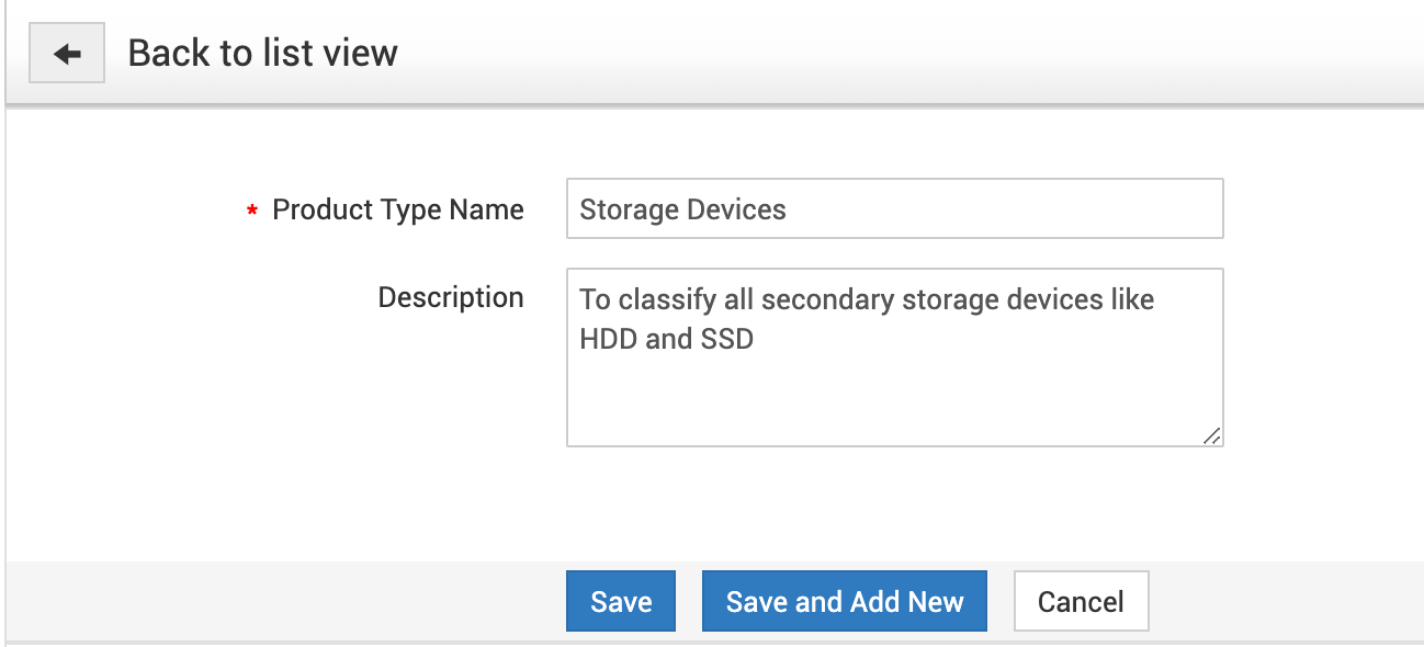 To view or edit a product type, click the name or edit icon. To edit, make necessary changes and click Save.