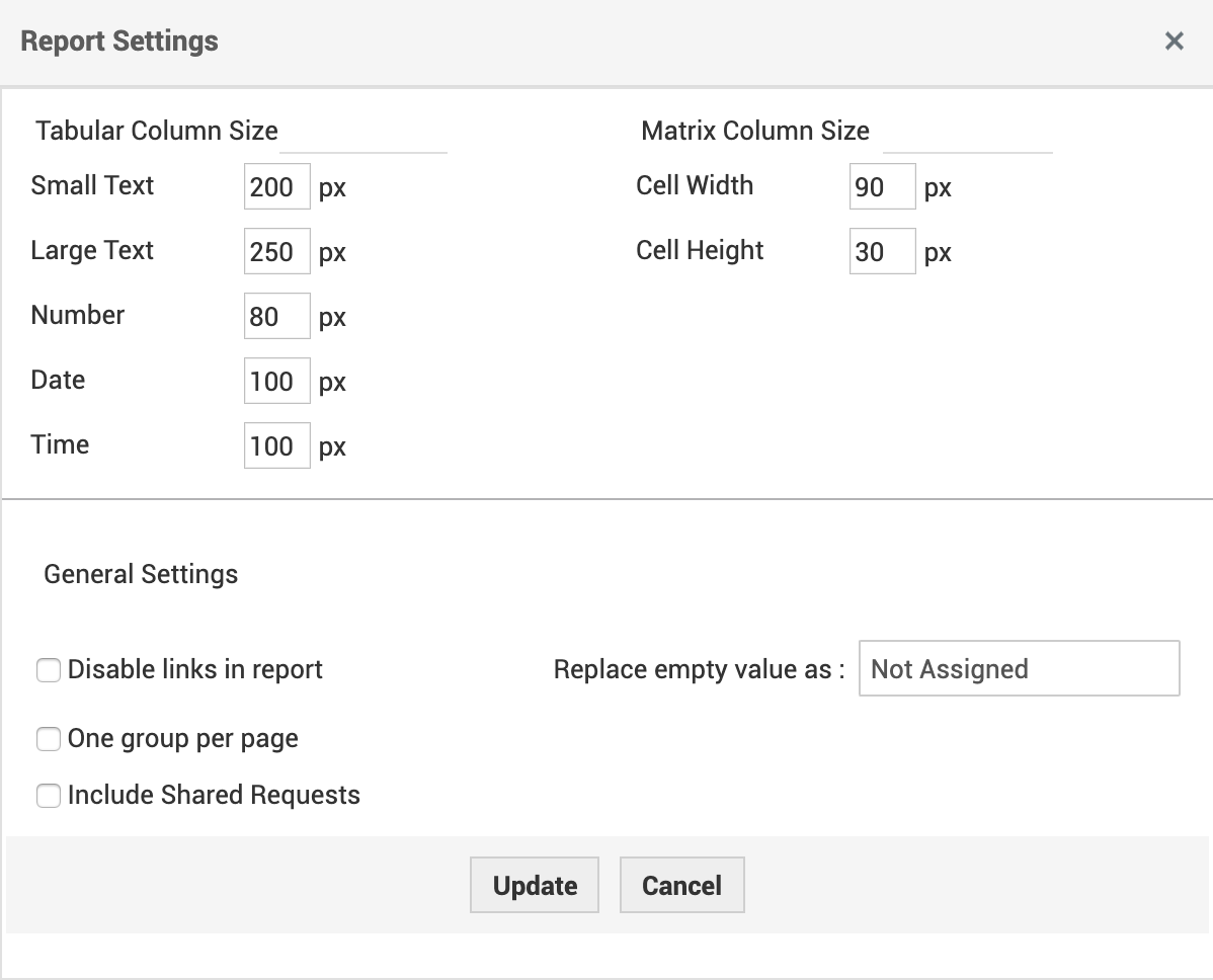 If you wish to customize the Matrix column size, specify the size of the cell width and cell height.