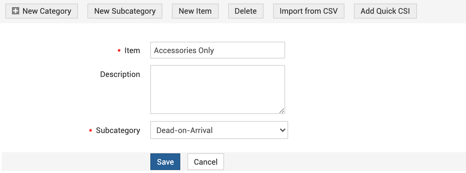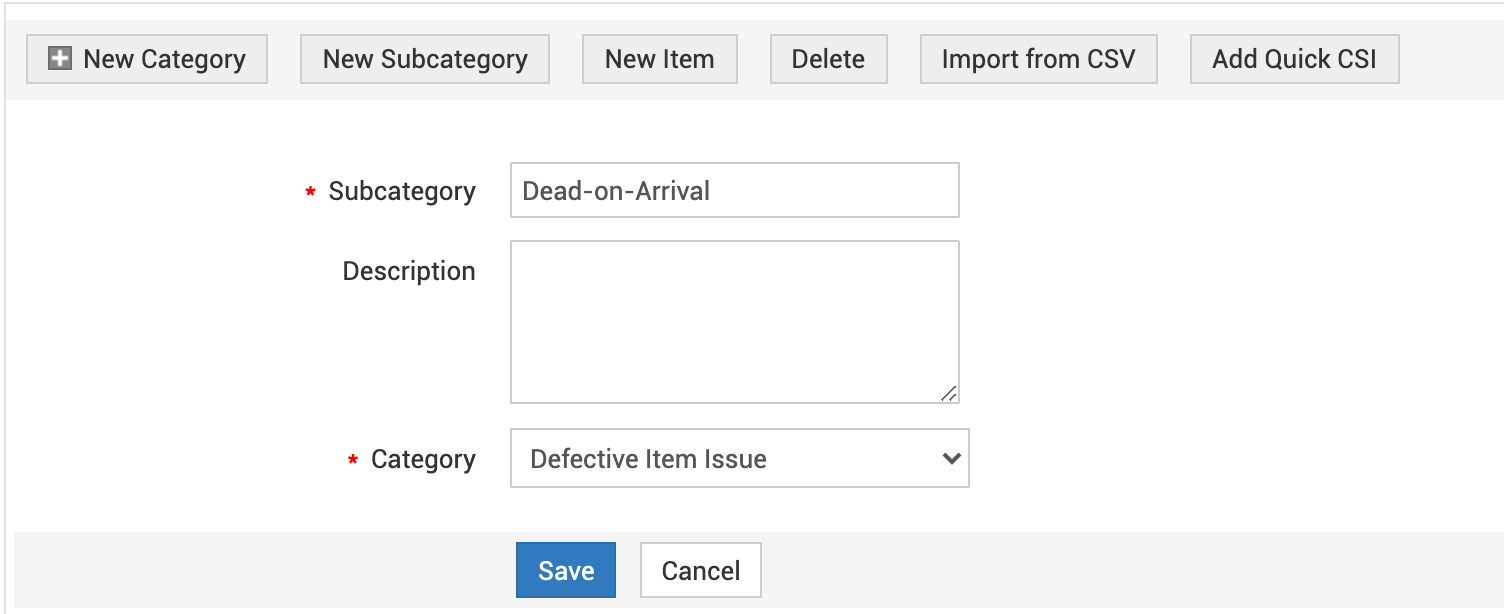 You can also bulk import categories (including subcategories and items) from a CSV file.