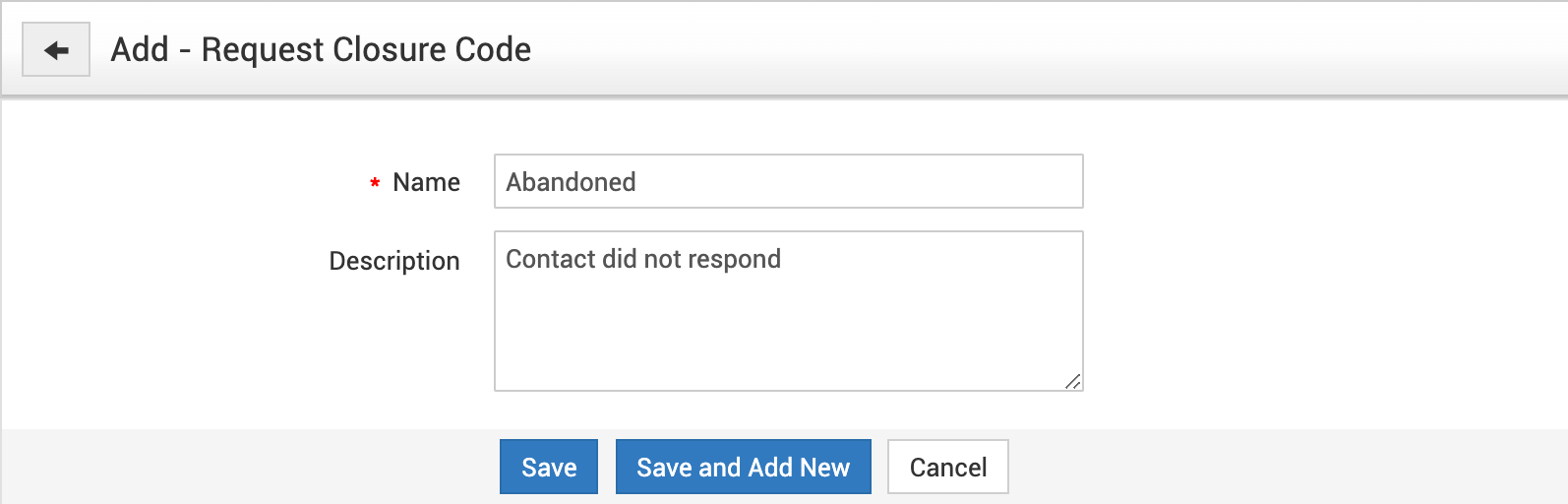 Request Closure Code is used to mark the reason for closing a request, whether the request was closed successfully, unsuccessfully, canceled, and so on. Using the request closure code, the administrator is able to comprehend the purpose of closing the request by the technician.