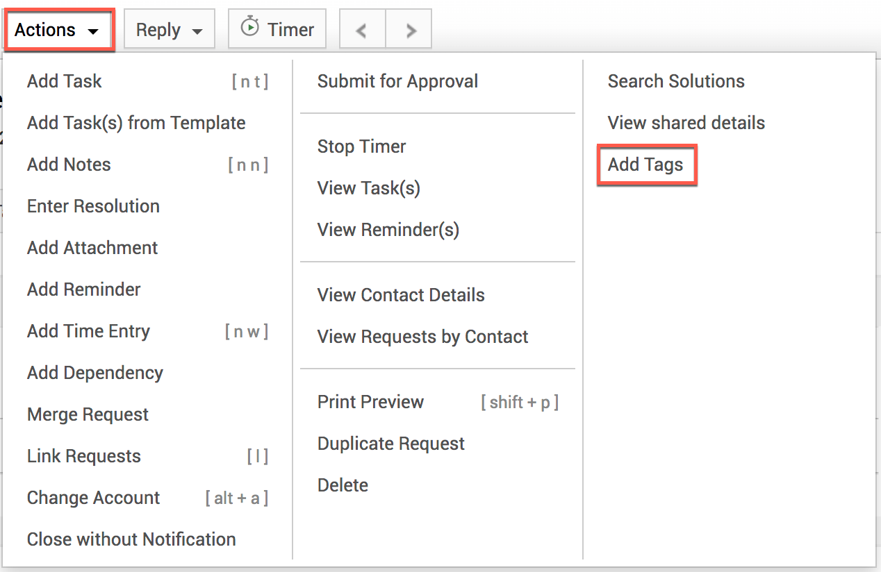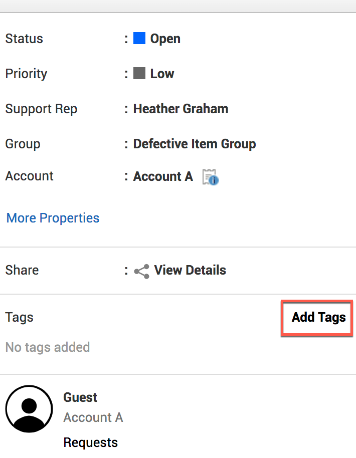 Add tags to a request in order to group them on a specific criteria. You can perform a global search for requests based on their tags. You can add up to 10 tags to a request.