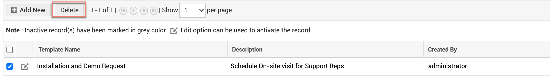 To delete, select one or more resolution templates using the checkboxes and click Delete.