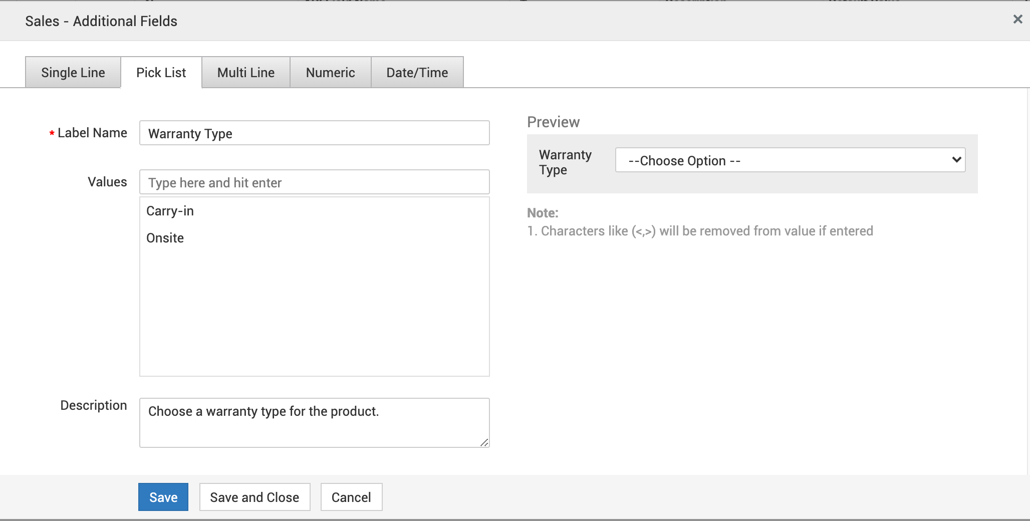 Based on your requirements, the default sales record can be customized using different types of additional fields. This is useful to capture sales-related additional information.