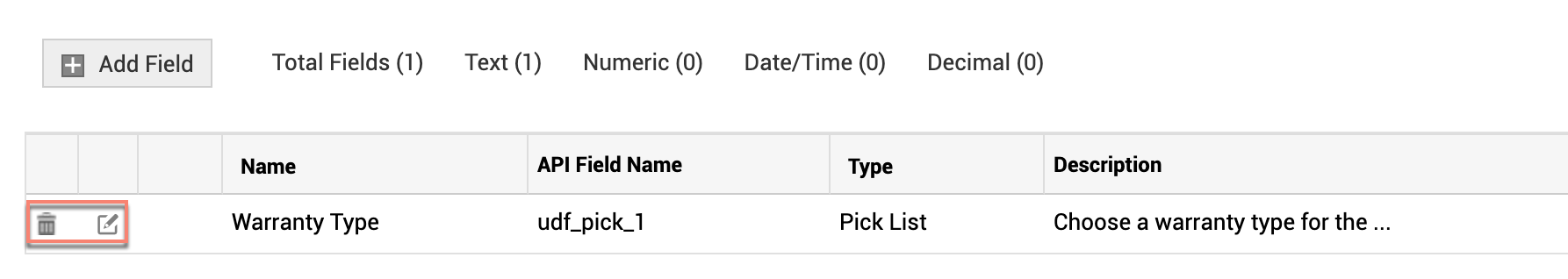 To edit a field, click the edit icon. Make necessary changes and click Save.