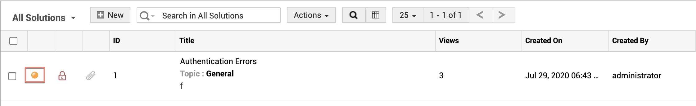 Click the subject of the solution which you want to submit for approval. This opens the View Solutions page. The Status is shown as Unapproved below the Solution Id.