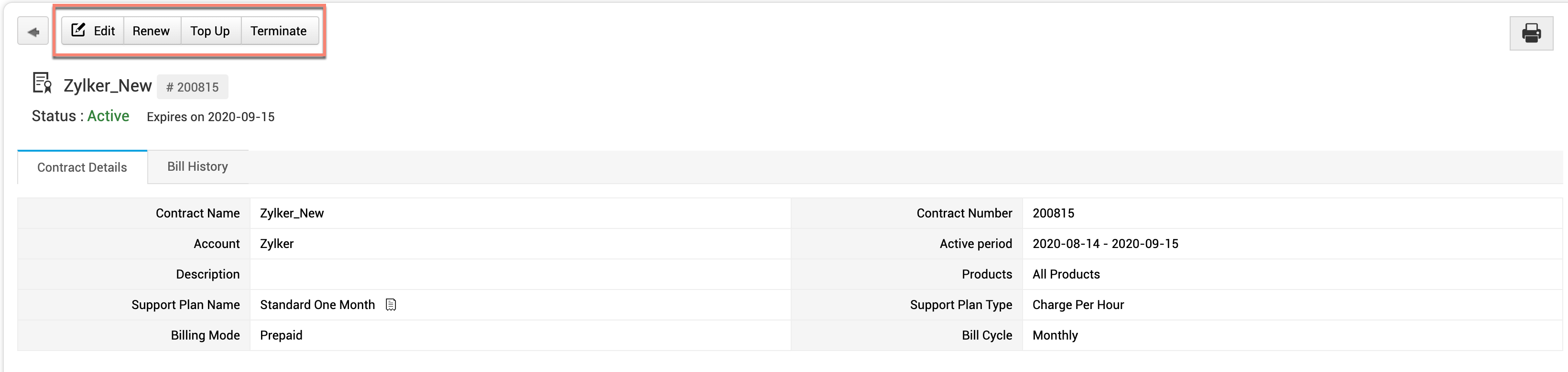 You can create billing contracts based on flexible support plans and charge your customers accordingly. Contracts are managed under Contracts module. You can also manage contacts from the accounts details page. You can manage contract bills and ...