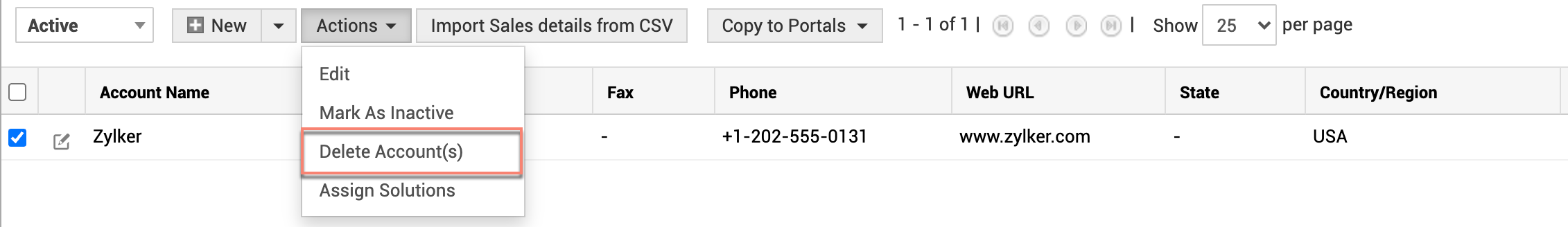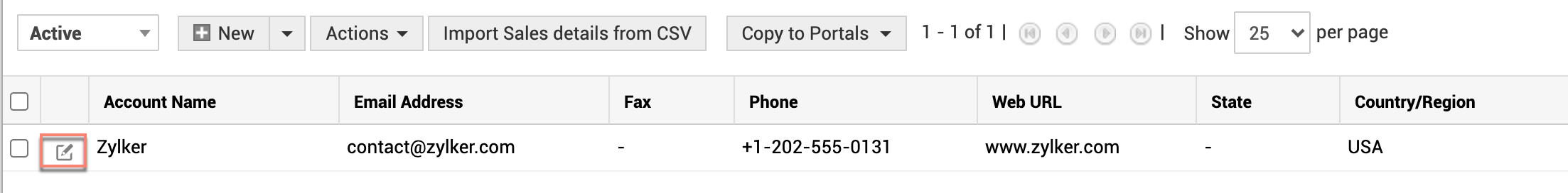 You can perform various sales-related actions from the sale list view. To access it, go to the Accounts tab, click the desired account name and then click Sales tab. The sale list view displays all sales associated with the customer's account. To ...