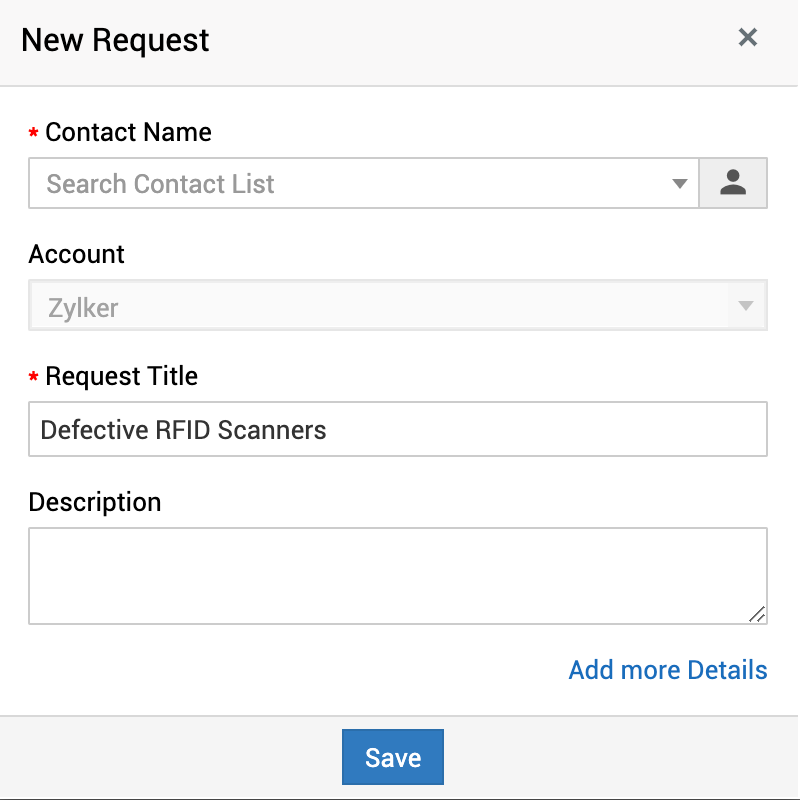 3. In the dialog box that appears, add Contact Name, Request Title, and Description.