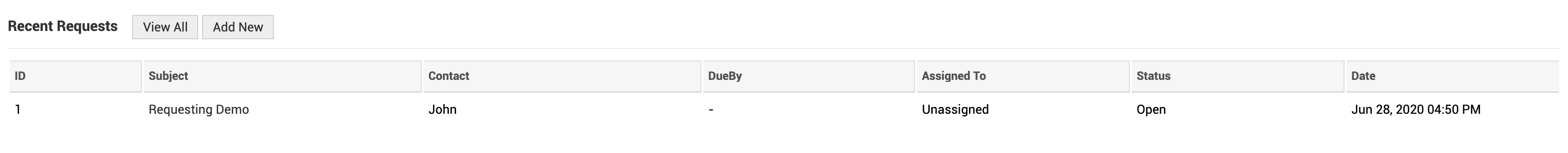 2. Navigate to the Recent Requests section to view all open requests associated with the account.
